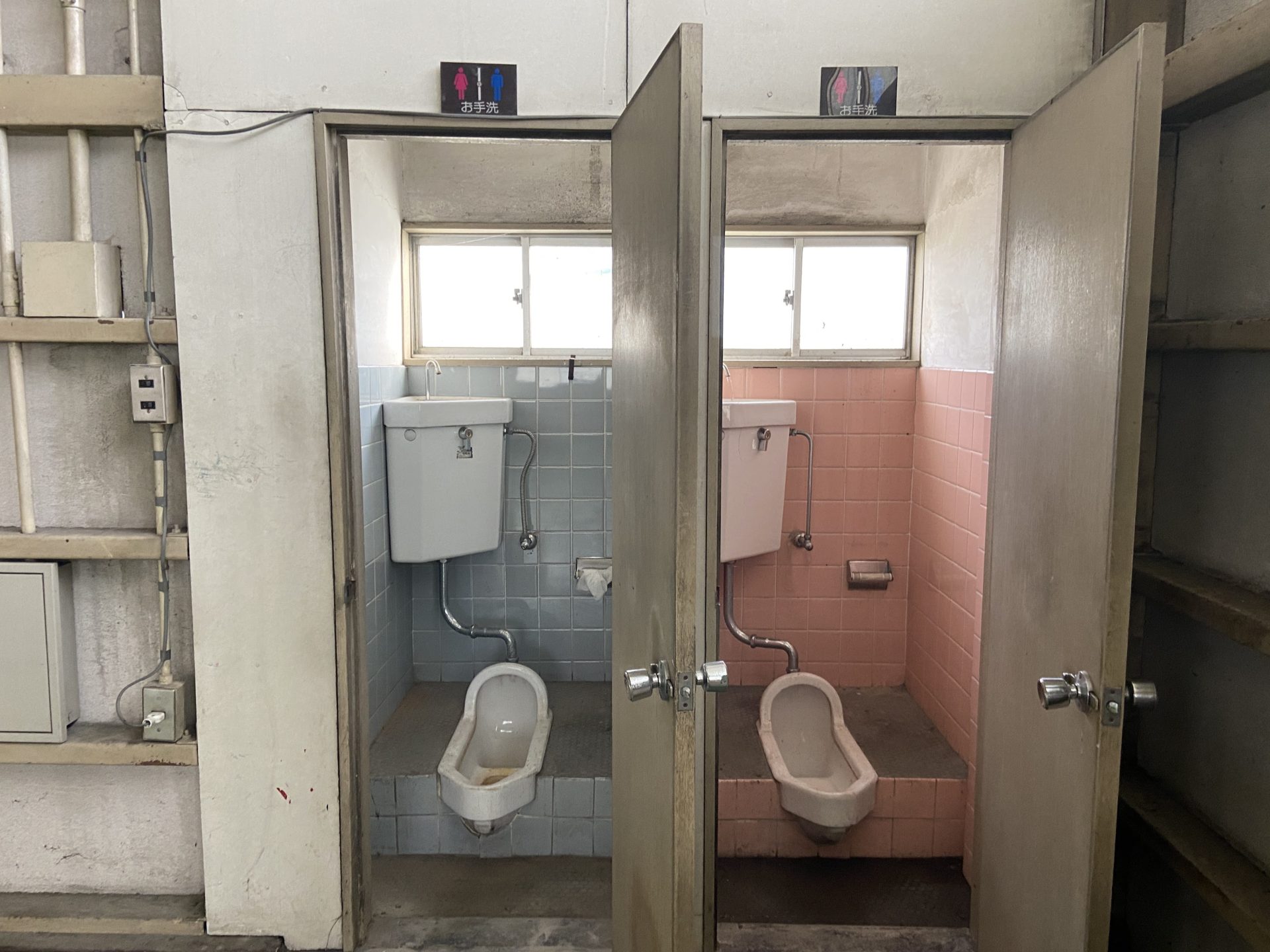 倉庫の内部は明るくOSB合板仕上げに、トイレは落ち着いたモルタル壁(TFアーテリア)へ、照明はLEDへ。