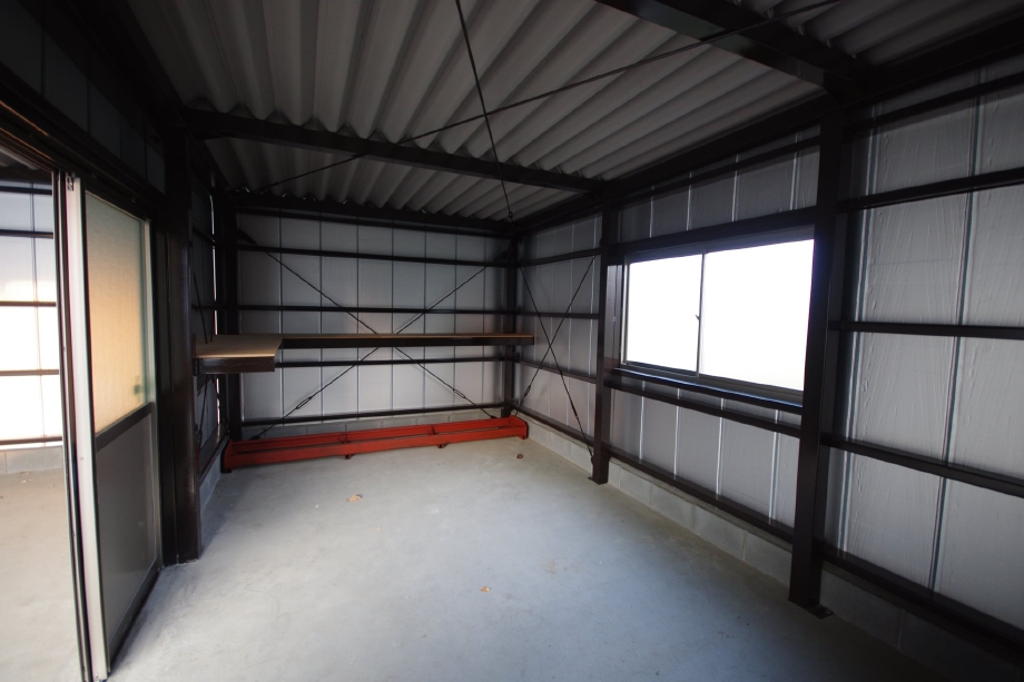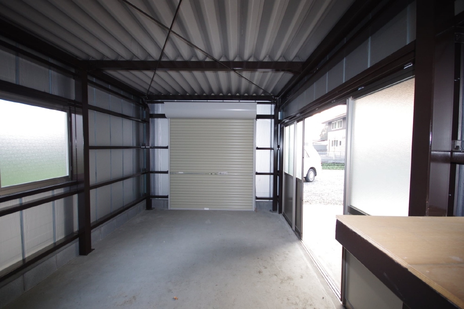 田んぼに囲まれ北風が強くふく敷地でしたので、砂埃からクルマを守るために北側西側に外壁を設けました。 バイクガレージ部分は表面に手動シャッターを、駐車スペースからは引違い戸を設け、どちらからでも出入りができるように設計しました。 中にはタイヤ置き場として鉄骨フレームを設置。その上には棚を設置しました。 「ゆくゆくは内壁を貼って、バイクをいじるためのガレージにしたい!」 その想い、育みの家㈲丸善工業はずっと応援します! |